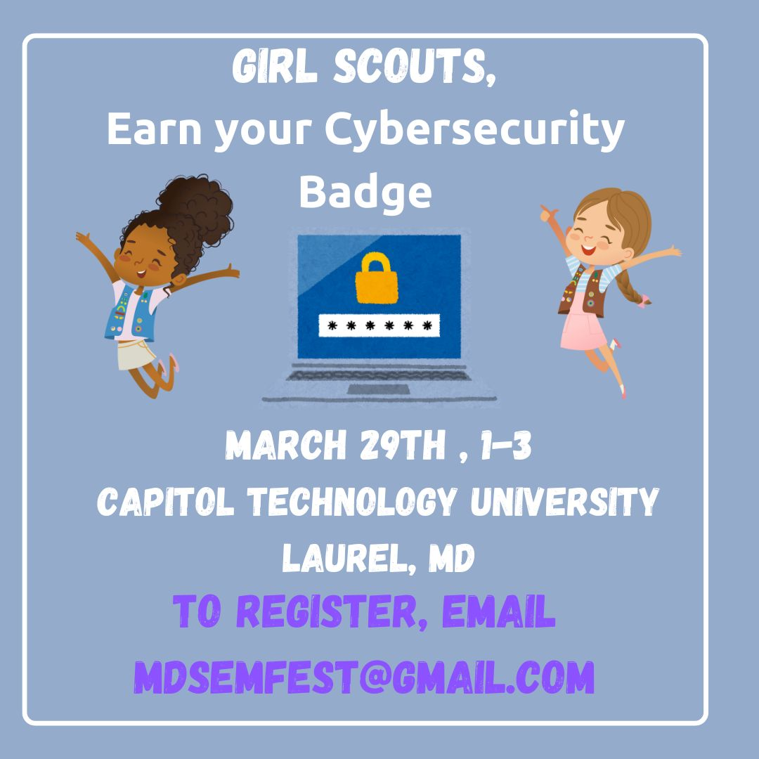 The Daisies, Brownies, Juniors, and Cadets , thier parents and the volunters had a great time at the Girl Scout Cybersecurity Badge event at Capitol Technology University on March 29th.